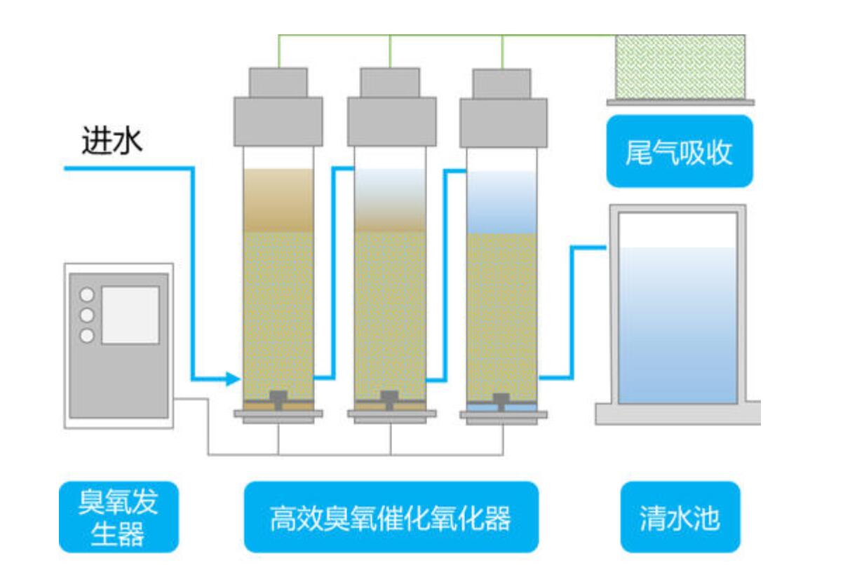 溶解性金屬鹽( 金屬離子) 催化臭氧化處理含酚廢水是利用溶液中的金屬離子和臭氧鏈?zhǔn)椒磻?yīng)產(chǎn)生的羥基自由基催化氧化酚類物質(zhì)?,F(xiàn)在普遍應(yīng)用的工藝有 Fenton /O3 和利用過渡金屬鹽類作為催化劑的 Fe( Ⅱ) -O3、Mn( Ⅱ) -O3、Ni( Ⅱ) -O3、Cu( Ⅱ) -O3、 Co( Ⅱ) -O3 等。金鑫等人研究 Fe2 + -O3 催化氧化五氯酚( PCP) ,表明 PCP 可在 5 min 后幾乎降解完全,而 TOC 在反應(yīng) 30 min 后去除率只有 50% ,原因是 O3 可以破壞其中的不飽和鍵,使苯環(huán)打開,產(chǎn)生酯、醛、酸、氯代烷烴等小分子物質(zhì),促使 TOC 增加。
