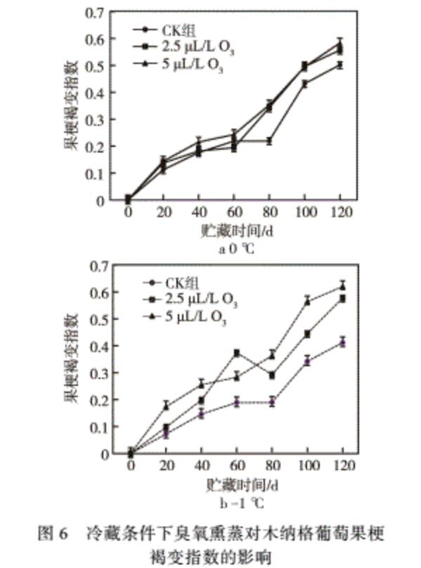 2.5 冷藏條件下臭氧熏蒸對木納格葡萄貯藏期間果梗褐變的影響