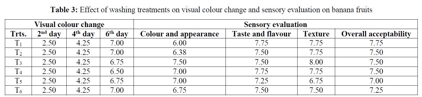 本研究在Bagalkot收獲后技術(shù)實(shí)驗(yàn)室進(jìn)行。將健康的香蕉手預(yù)先冷卻,然后進(jìn)行5分鐘的洗滌處理,即T1: