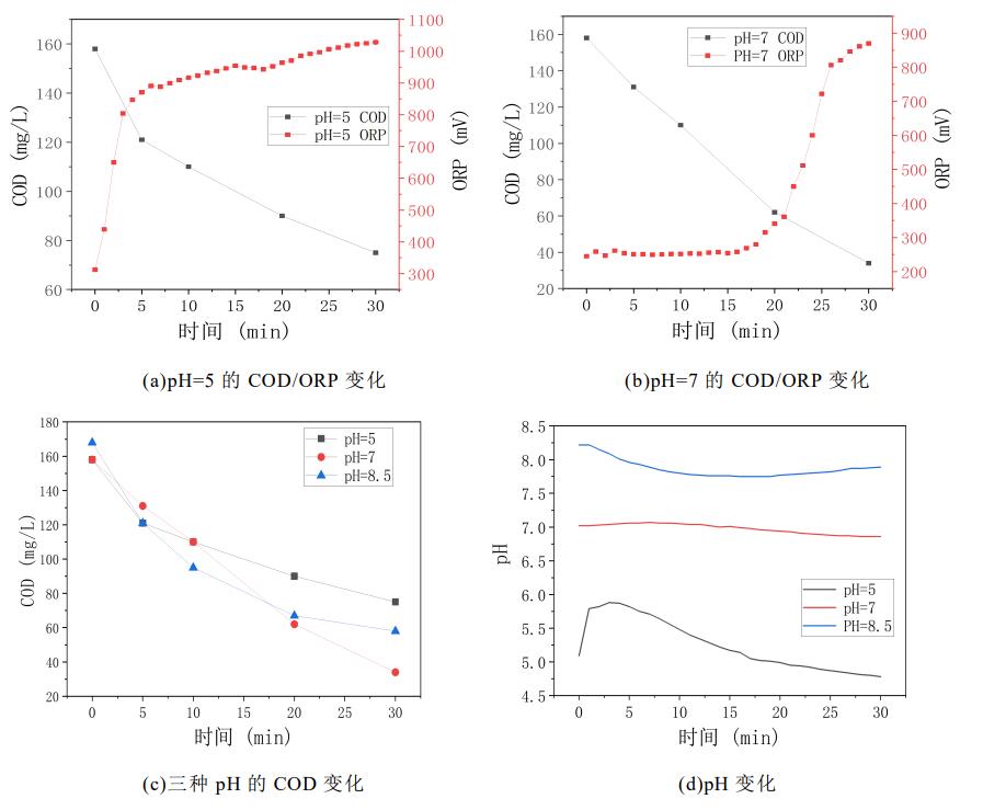 圖 2 改變 pH 條件下臭氧微納米氣泡處理實際印染廢水