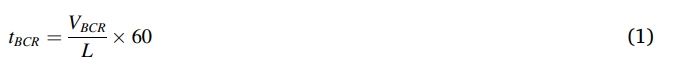 液體在BCR中的停留時(shí)間由下式Eq1計(jì)算。
