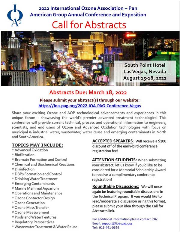 在這個獨特的論壇上分享你激動人心的Ozone和AOP技術(shù)進步和經(jīng)驗,展示世界先進的先進處理技術(shù)!本次會議將為臭氧和高級氧化技術(shù)的工程師、科學(xué)家和終端用戶提供很新的技術(shù)、流程和操作信息,重點關(guān)注北美和南美的市政和工業(yè)用水、廢水、水再利用和新興污染物。