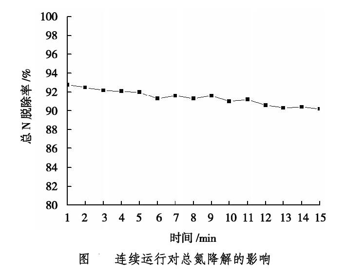(1)反應(yīng)器連續(xù)運(yùn)行15h后,出水中總氮降解率均>90%,未見明顯下降趨勢。
