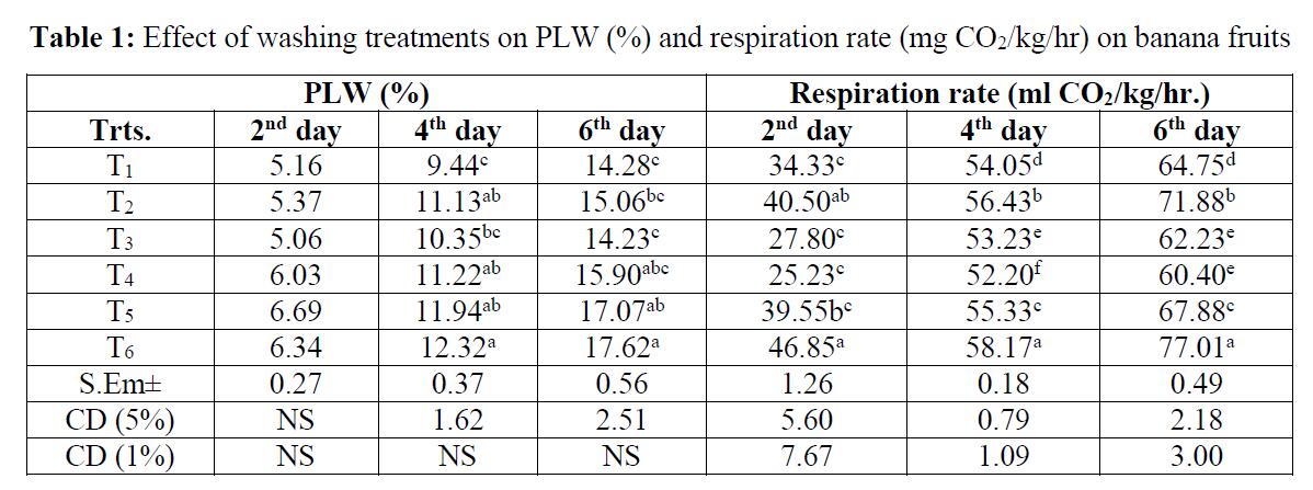 本研究在Bagalkot收獲后技術(shù)實(shí)驗(yàn)室進(jìn)行。將健康的香蕉手預(yù)先冷卻,然后進(jìn)行5分鐘的洗滌處理,即T1: