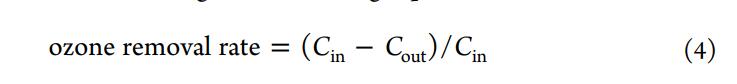 式中,Cin和Cout分別為進口和出口臭氧濃度。為了進一步表征反應的活性,將反應速率(r)和比反應速率(rs)用催化劑重量和催化劑的比表面積(SSA)歸一化如下